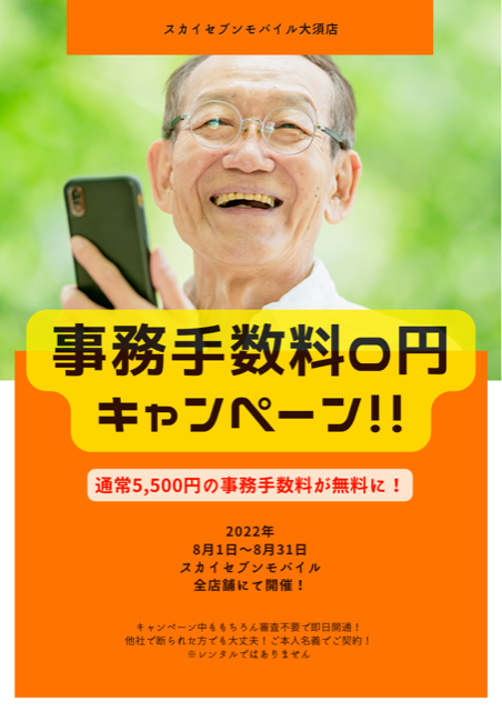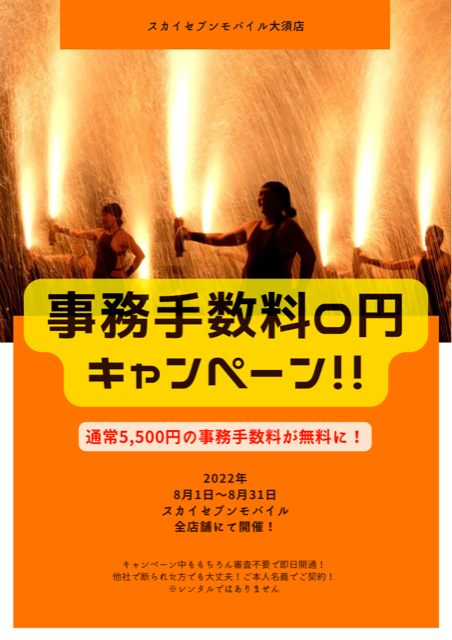 8月1日~8月31日まで通常5,500円かかる事務手数料がなんと0円!!